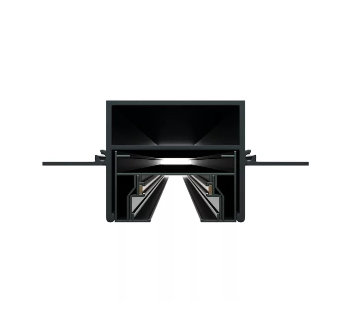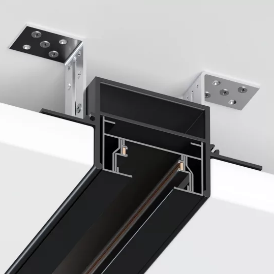 Встраиваемая трековая система серии CITY 2TRA для установки в ГКЛ, натяжной потолок состоит из закладного профиля и трека.